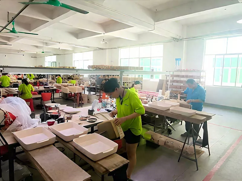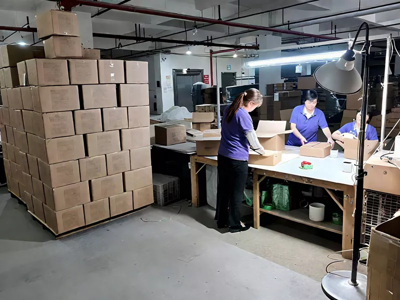 Pakkausten ja kuljetusten helpottamiseksi olemme perustaneet oman pakkauskeskuksen Dongguaniin sijaitsevan pääkonttorin lähellä. Tämä keskus on erikoistunut pakkausratkaisuihin hauraille esineille, kuten lasikynttilöille ja hajottimille. Voimme luoda räätälöityjä laatikoita ja vuorauksia, ja käytämme ympäristöystävällisiä materiaaleja suojaamaan esineitä, kuten lasihävittäjiä ja koriste -keramiikkaa, varmistaen niiden turvallisuuden kuljetuksen aikana.