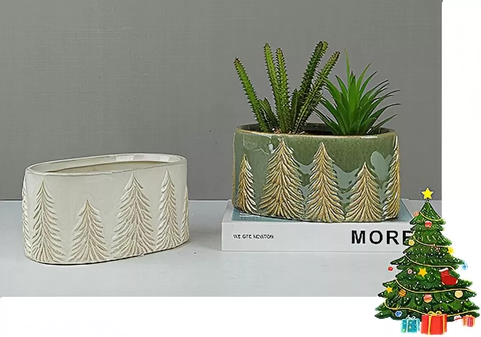 BYF Embossed Christmas Pine Vase -sarja sisältää huolella käsintehtyjä keraamisia maljakoita ja kukkaruukkuja, joissa on klassinen ikivihreän puun kohokuvio. Koot vaihtelevat pienistä mehevistä istutuslaatikoista suuriin maljakoihin, joista jokainen on suunniteltu lisäämään ripaus luonnollista, juhlavaa viehätystä kotisi sisustukseen. Runsaat vihreät ja raikkaat valkoiset värivaihtoehdot yhdistettynä usein punaisiin marjoihin ja kerrokseen "lumi"-koristeita tekevät tästä sarjasta täydellisen keskipisteen lämpimän ja kutsuvan lomailmapiirin luomiseen.