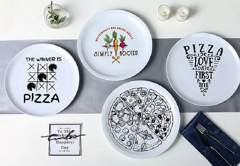 ● Luova muotoilu kirkastaa pöytää: Pizzan ydinelementtinä se sisältää hauskoja kuvituksia ja leikkisää tekstiä (kuten "I PIZZA" ja "Kaikki mitä tarvitset on PIZZA"), mikä rikkoo perinteisten astioiden yksitoikkoisuuden ja tuo iloa ruokailuun. Sovellukset