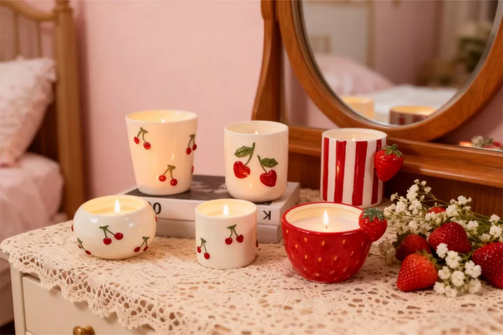 BYF:n Super Adorable Ceramic Candle Jar -sarjassa on korkealuokkaisia ​​käsintehtyjä keraamisia kynttiläpurkkeja, joissa on "supersöpö" muotoilu. Malleissa on klassisia makeita elementtejä, kuten punaisia ​​kirsikoita, kolmiulotteisia rusetteja ja mansikoita, tasaisella lasiteella ja monipuolisilla muodoilla. Valmistettu turvallisista ja ympäristöystävällisistä materiaaleista, se on erinomainen lämmönkestävyys ja sopii täydellisesti vakiosydämiin ja erilaisiin vahapohjiin tehden siitä sekä laadukkaan kynttiläastian että taiteellisen koristeesineen, joka korostaa kodin sisustusta.